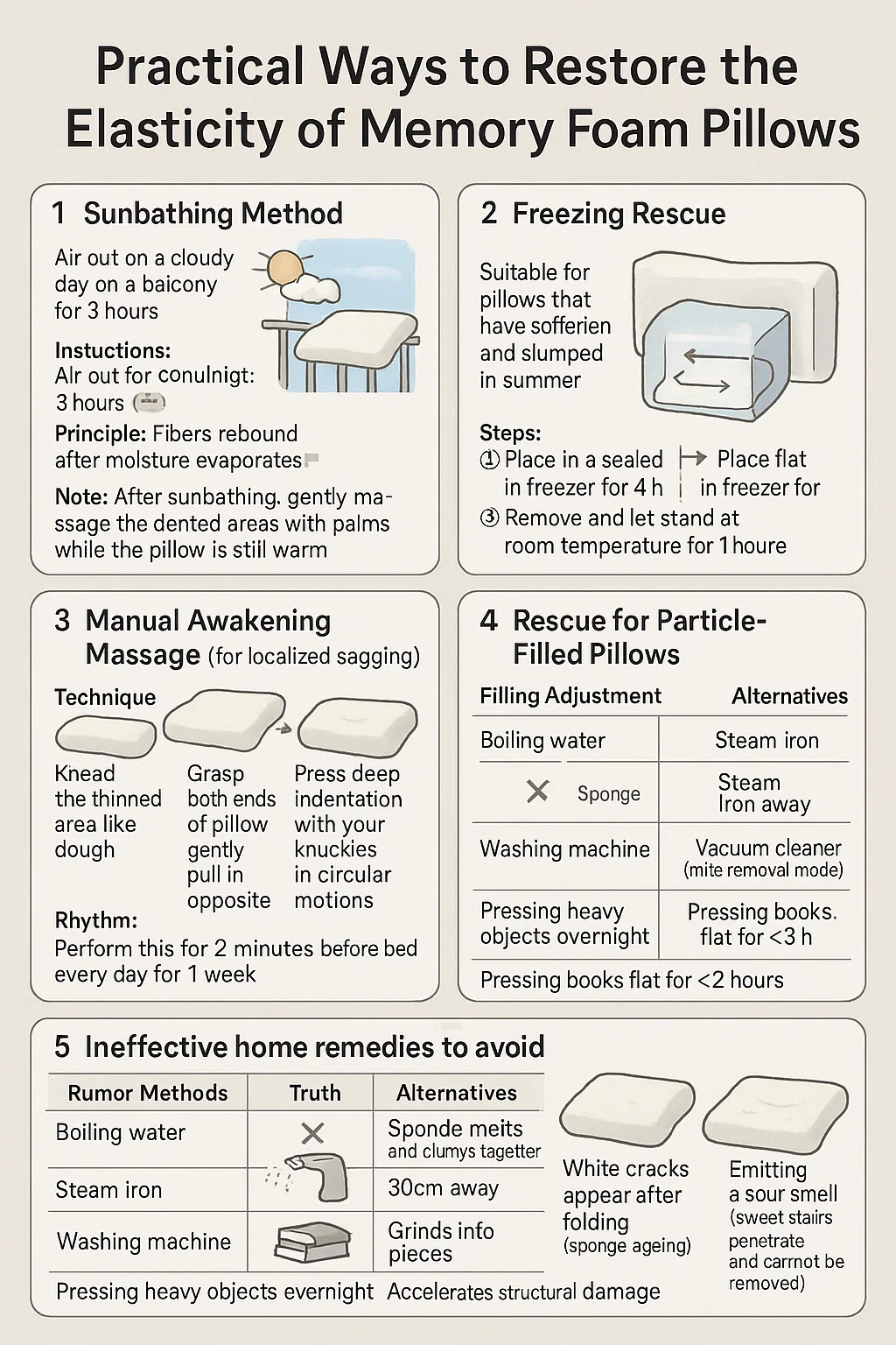 Zde je několik praktických způsobů, jak obnovit elasticitu polštáře z paměťové pěny :