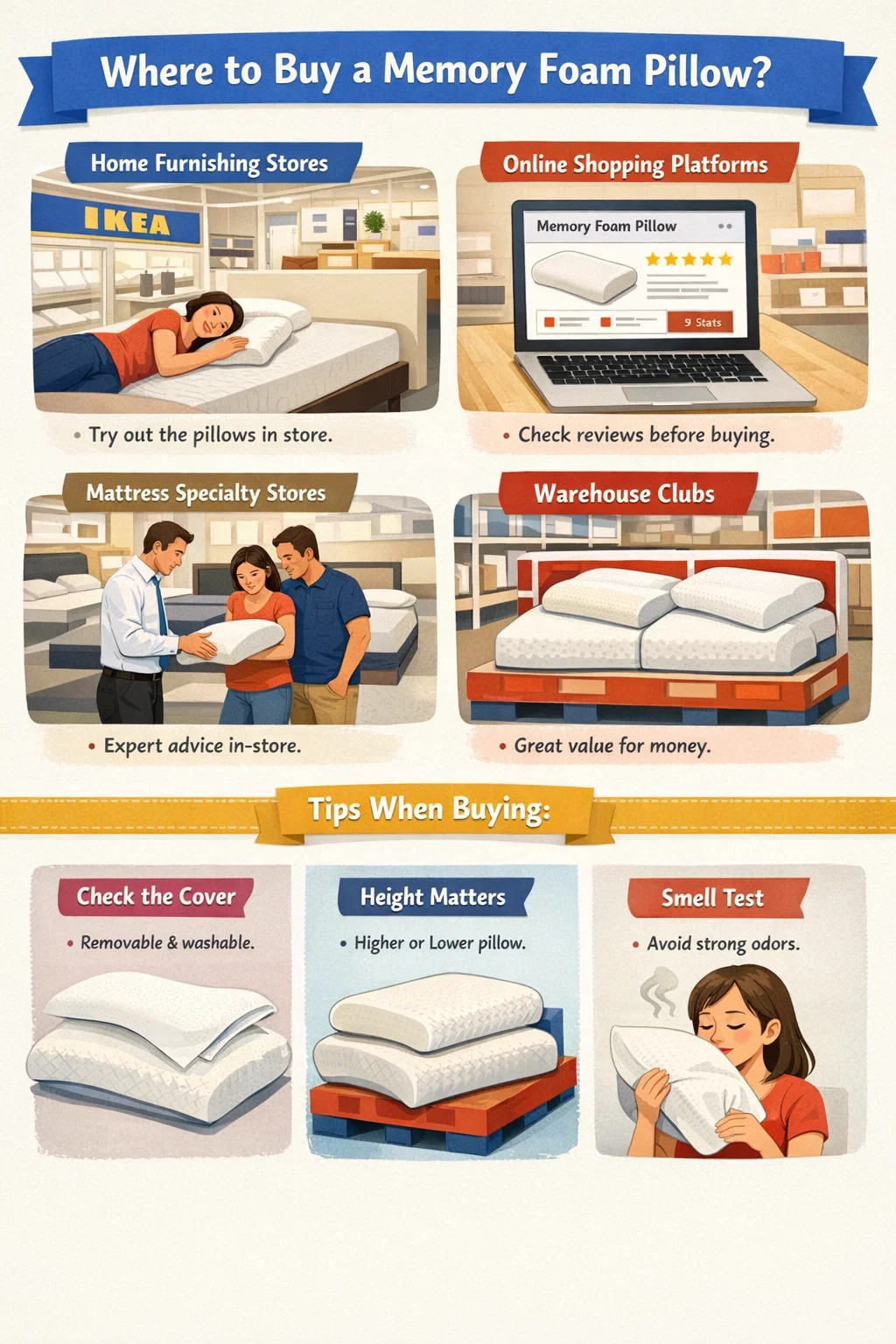 Místa jako IKEA nebo specializované obchody s bytovým vybavením jsou pro mnoho lidí první volbou při výběru polštáře z paměťové pěny.
