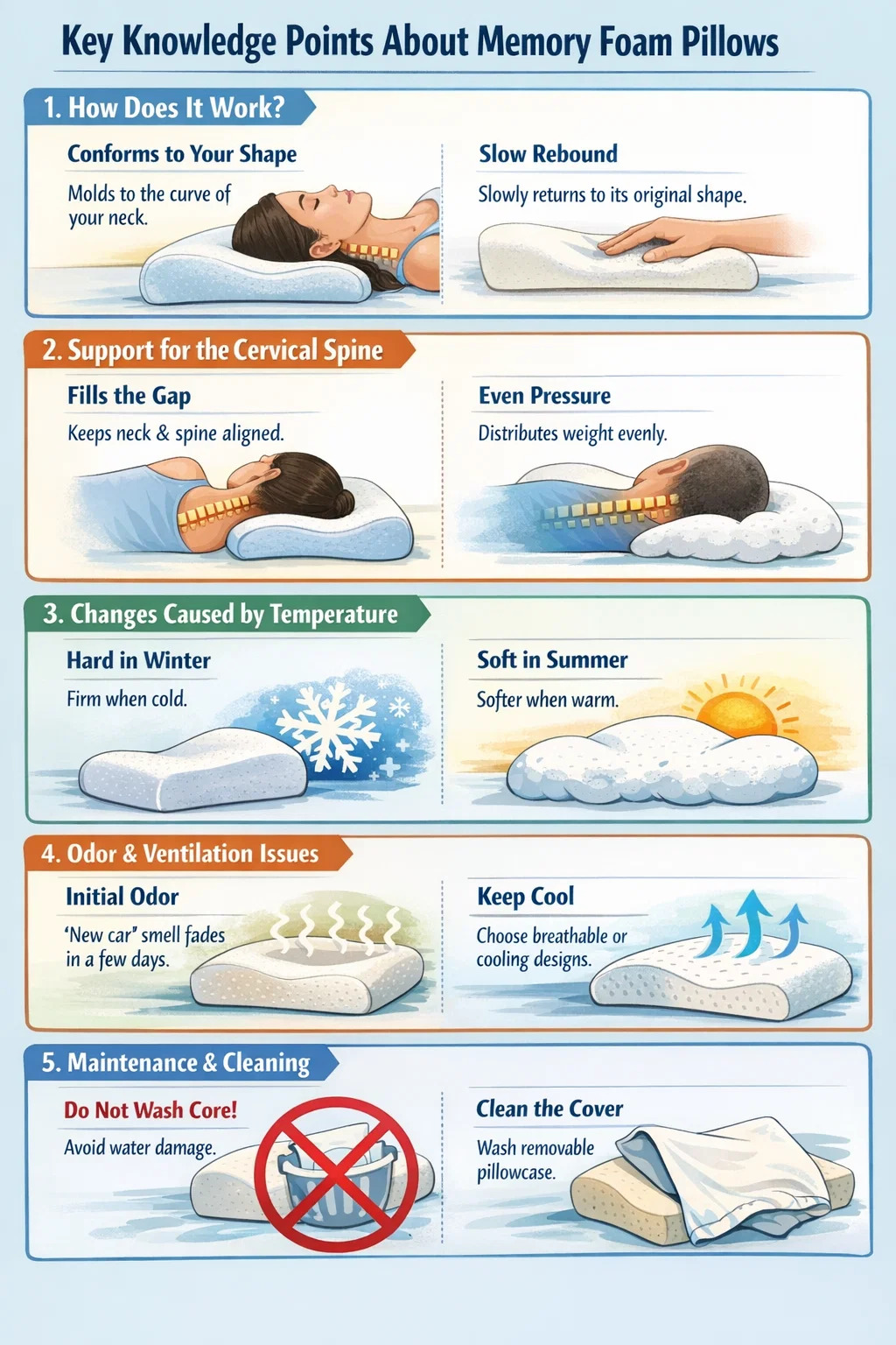 ● Klíčové body znalostí o Polštáře z paměťové pěny