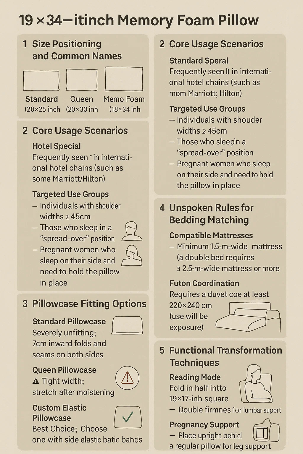 Nestandardní specifikace: širší a kratší než standardní polštář (20 x 26 palců), o něco širší než polštář Queen (20 × 30 palců)